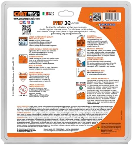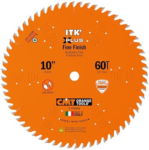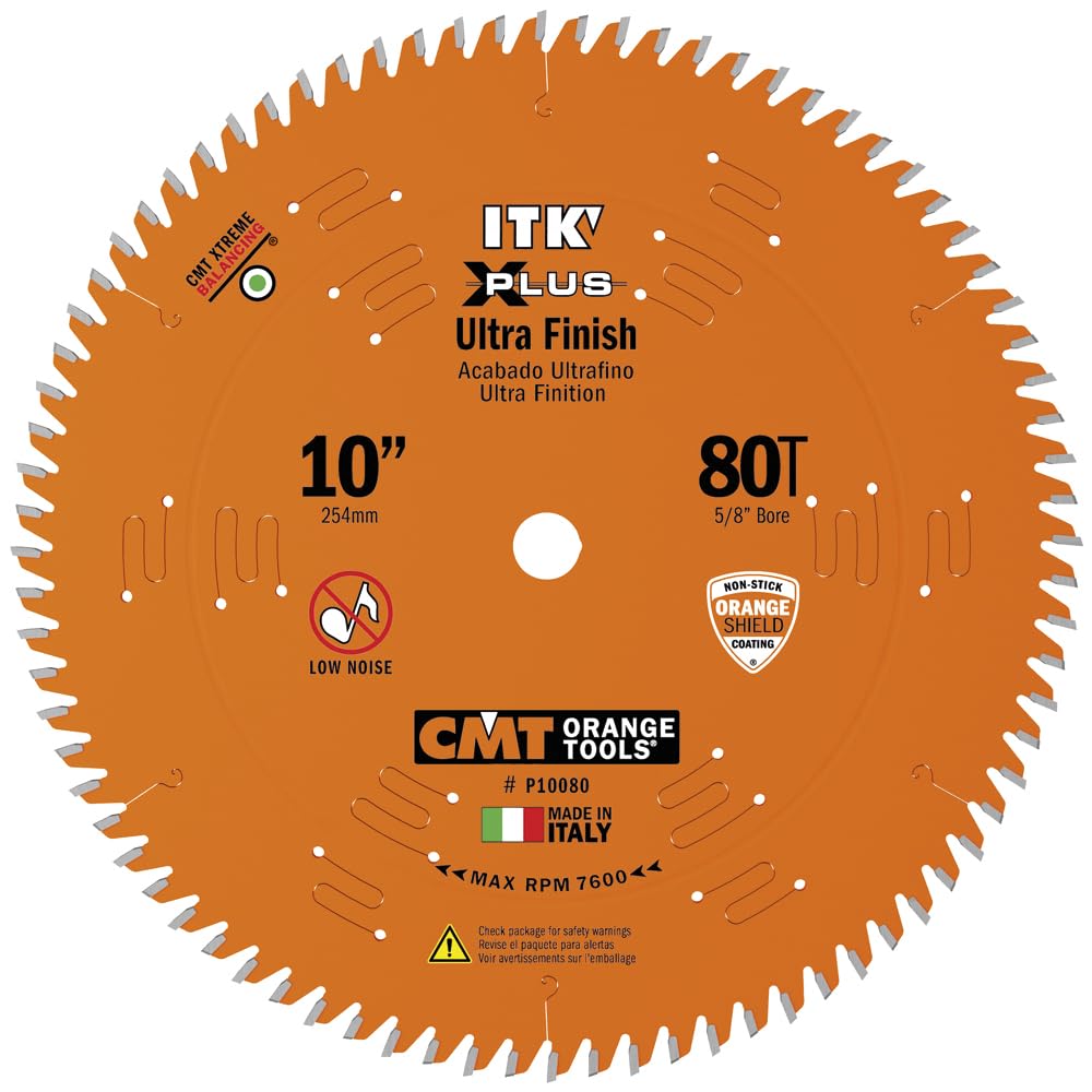 CMT P10060 ITK Plus Finish Saw Blade, 10 x 60 Teeth, 10° ATB+Shear with 5/8-Inch bore