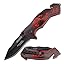 • SPECIAL FEATURES: Finger Flipper, Liner Lock, Black Aluminum Handle with Red Dragon, Rope Cutter, Glass Punch, and Pocket Clip.