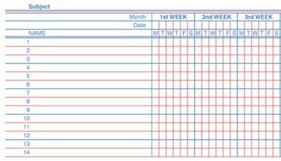 Class Record Book,Visionaid 18-Week Class Record Book, ideal for colleges or universities on semester system. Pages have blue and red text. Space provided for recording up to 6 days per week, multiple seating charts. This book has a red, leather-like cover; Size 7.75"w X 11"h; White stock with red and blue text