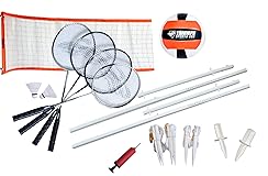 - Turn your backyard into a full outdoor playground with this advanced four-player badminton/volleyball set from Triumph Sports. The set comes with everything you need to play badminton or volleyball with three of your closest friends, including a net, four badminton racquets, two shuttlecocks, an official volleyball, and all the related accessories.