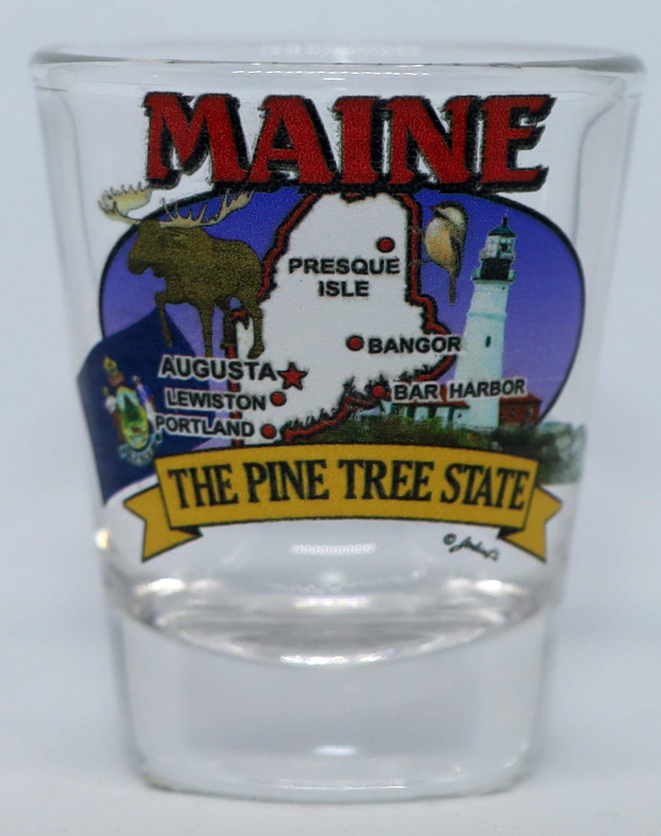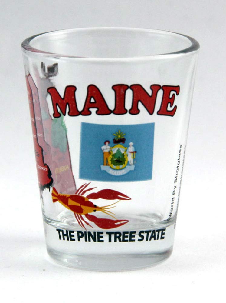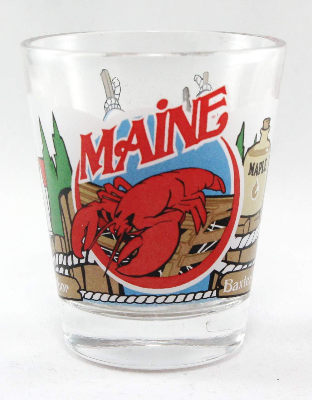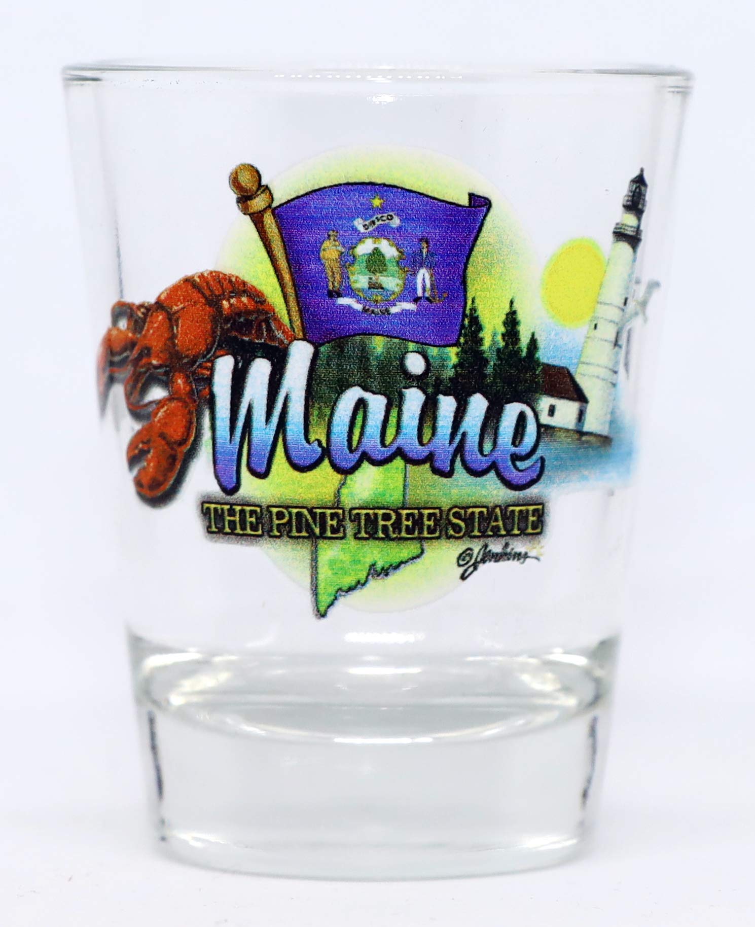 Here's a very rare and hard to find souvenir collectible shot glass from Maine. It's a 5x6cm style shot glass measuring 2.25" tall and 1.8" in diameter. It depicts a variety of scenery found in this beautiful state. Not for Dishwasher or Microwave.