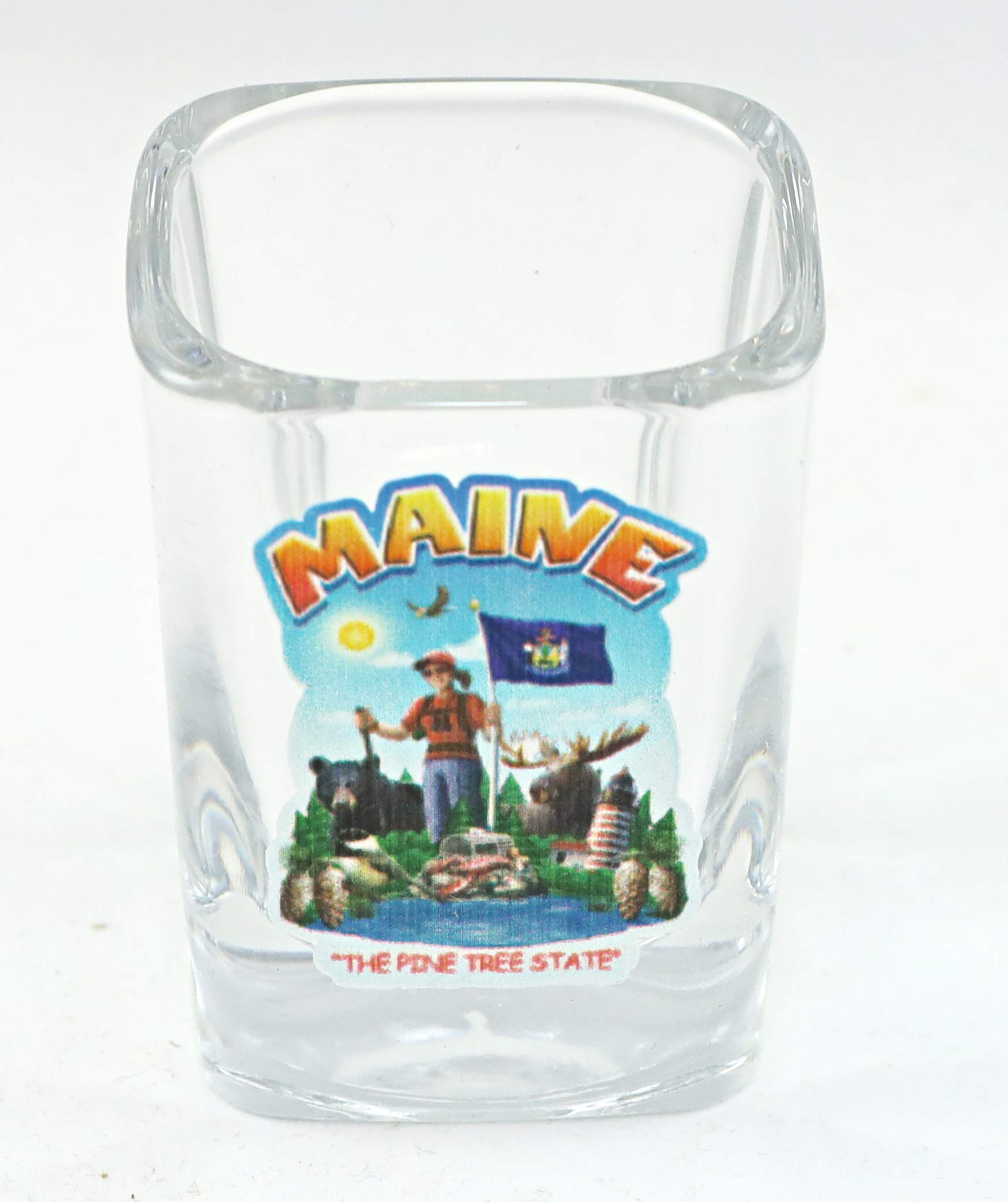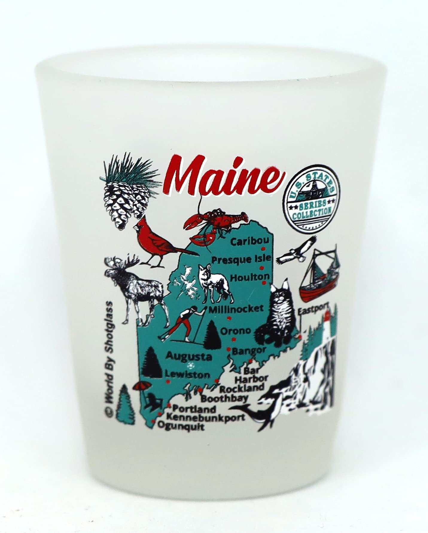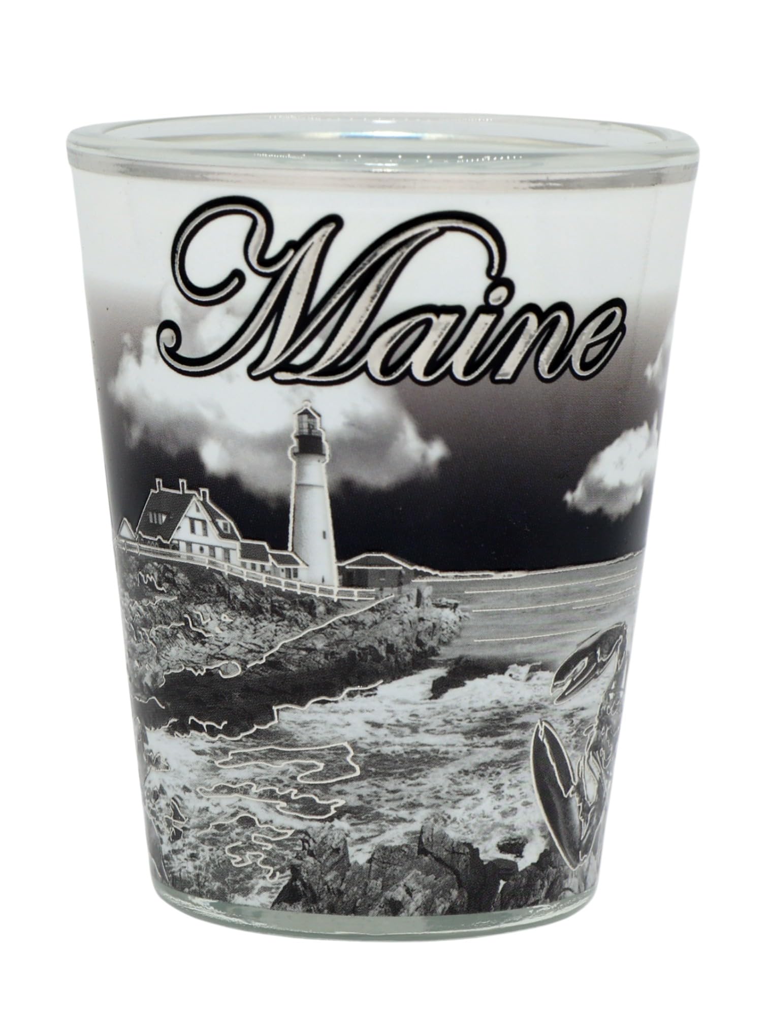 Here's a very rare and hard to find souvenir collectible shot glass from Maine. It's a 5x6cm style shot glass measuring 2.25" tall and 1.8" in diameter. It depicts a variety of scenery found in this beautiful state. Not for Dishwasher or Microwave.