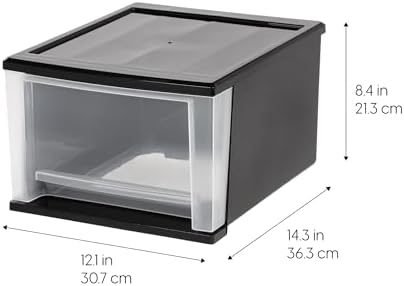 IRIS USA 17 Qt. Medium Plastic Stacking Drawer, Stackable Storage Organizer Unit with Sliding Drawer for Bedroom Kitchen Under Sink Pantry Craft Room Dorm Office, Black, 4-Pack