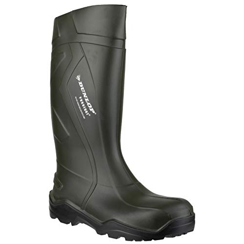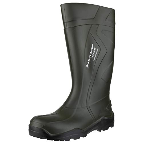 DUNLOP Purofort+ - Lightweight Work boots for Men & Women - Waterproof boots with Soft Toe - Chemical and Slip Resistant with Tall Shaft - Dark Green/Black - Size 3-16/17
