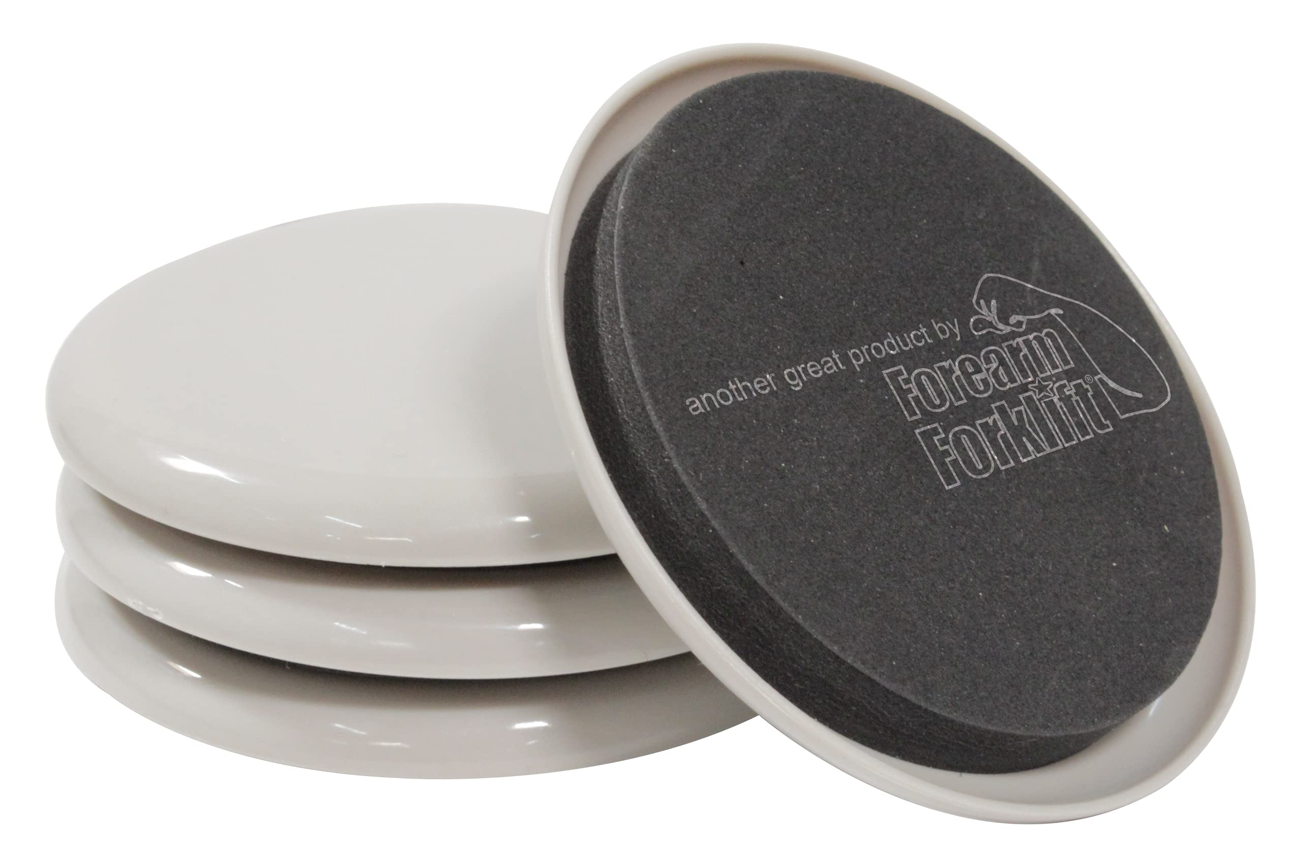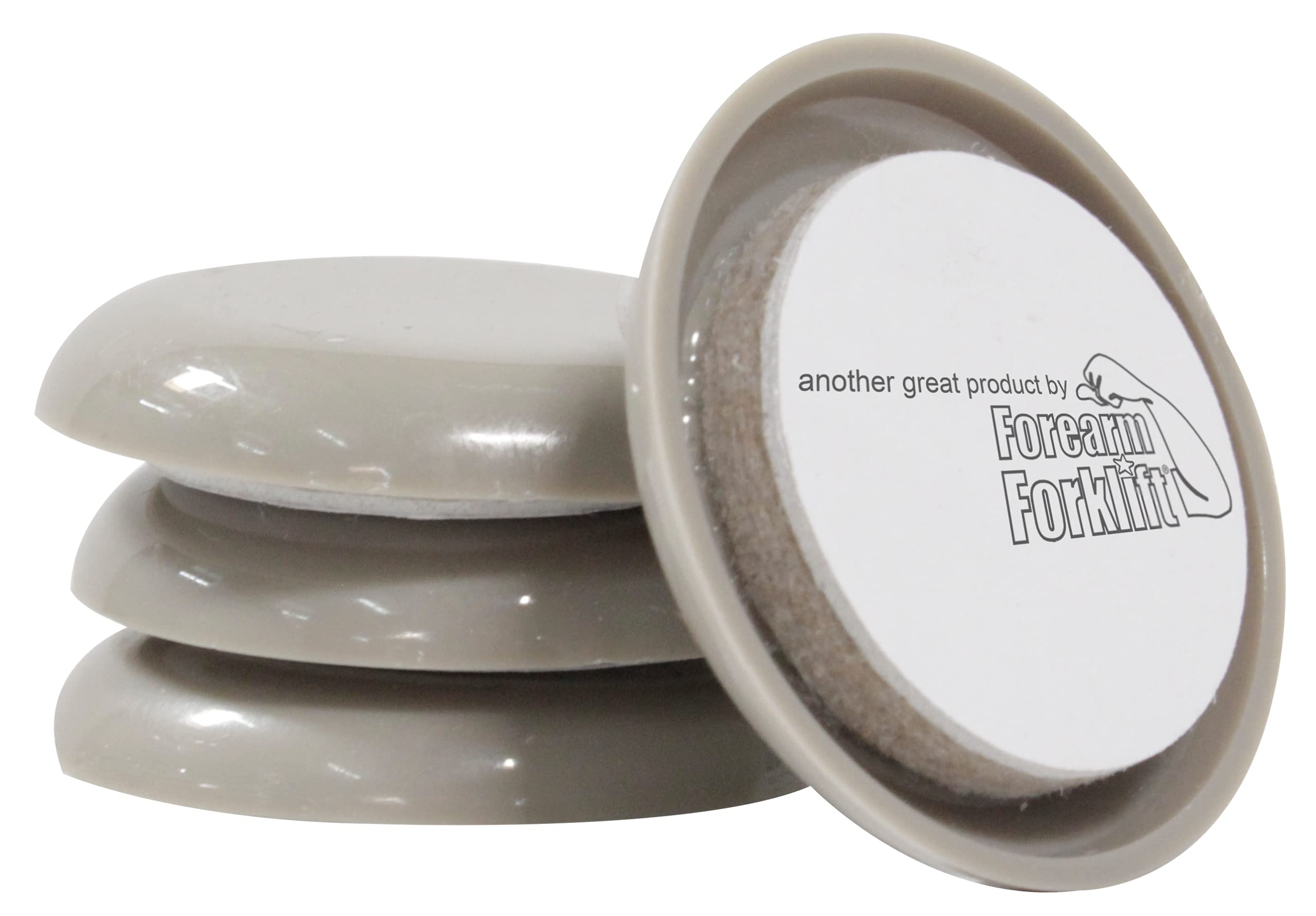 Forearm Forklift, Furniture Sliders, This Offer is for a Pack of 4 Slides, Each Plastic Disk Measures 5 inches in Diameter, Model FFSD45, Grey