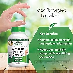 9 Essential Ingredients- Giving your brain the support it needs as you age, Advanced Memory Complex delivers Vitamin B-6, Folate, Vitamin B-12, Pregnenolone, Ginkgo Biloba Extract, Eleuthero Powder, Gotu Kola and Choline Memory Support- delivers important B vitamins which help to slow down normal age-related forgetfulness while supporting both short-term and long-term memory to keep you mentally sharp Overall Wellness- Crucial to the brain and nervous system, B-12 also supports healthy levels of homocysteine – an amino acid and the subject of studies on cardiovascular health – in the blood to promote general wellness Quality- Free of gluten and GMOs, this Botanic Choice supplement only contains the finest ingredients for optimal potency. Take two capsules once daily with a meal to help you maintain healthy cognitive function Trust- Founded in 1910, Botanic Choice is a family owned and operated business located in the USA. We believe in unlocking the miracle of mother nature through plant science and specialize in herbal health and wellness. Our experts blend our high-quality herbs select to provide a premium natural supplement experience