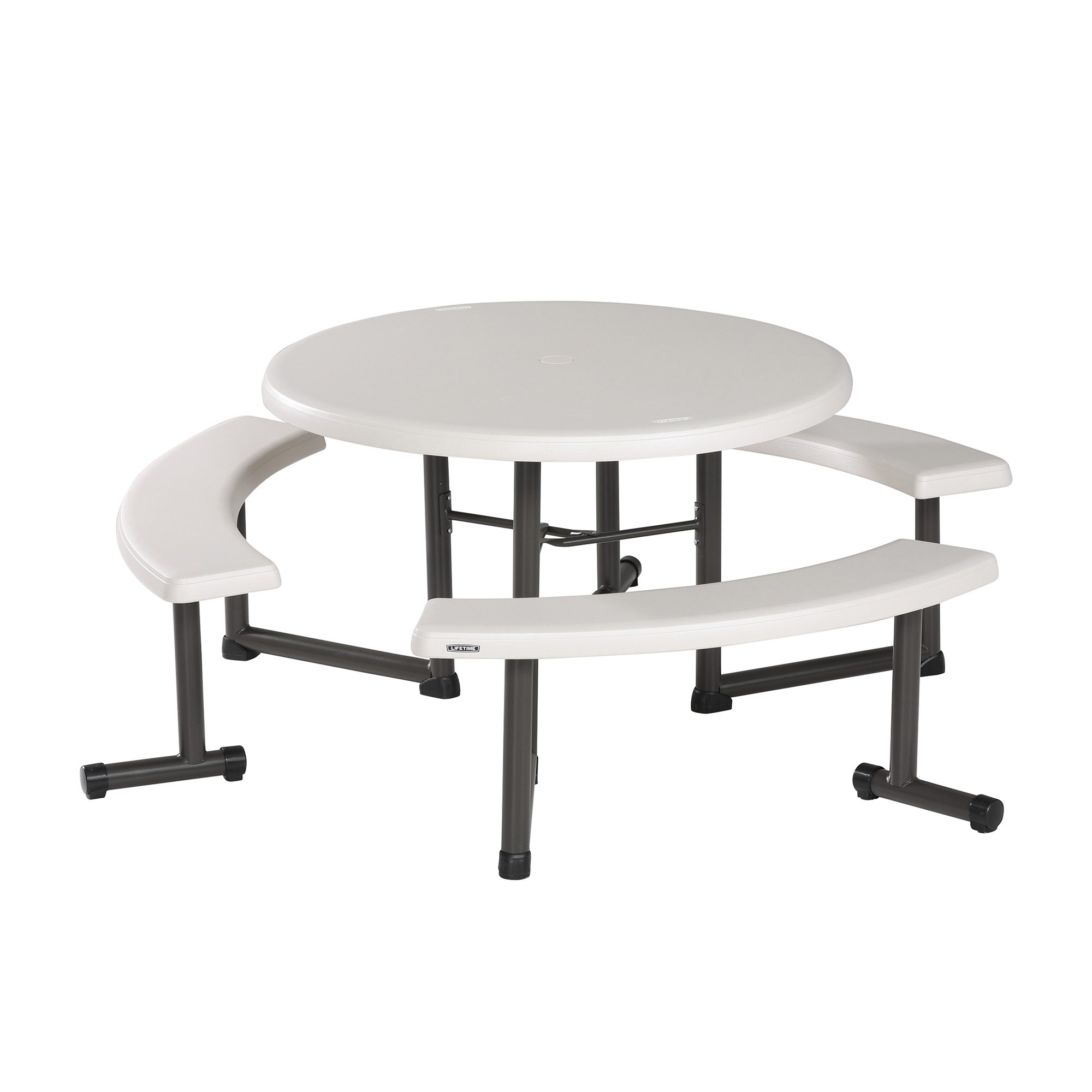Lifetime 6-Foot Picnic Table - The 72 in. x 30 in. high-density polyethylene tabletop is stain resistant, easy to clean, and folds flat for storage. This model comes in brown with a wood grain texture and a bronze 1-5/8 in. round folding frame that includes an umbrella hole and cap. Single box packaging. 2-year limited warranty. The Lifetime 6-Foot Picnic Table gives you that perfect extra outdoor eating space you've always wanted. Constructed of UV-protected high-density polyethylene and powder-coated steel, our picnic tables are weather and rust resistant, and will not fade, crack, chip or peel. Stronger and more durable than wood, they are low-maintenance, stain resistant and easy to clean. Best of all, Lifetime picnic tables fold completely flat for convenient storage.