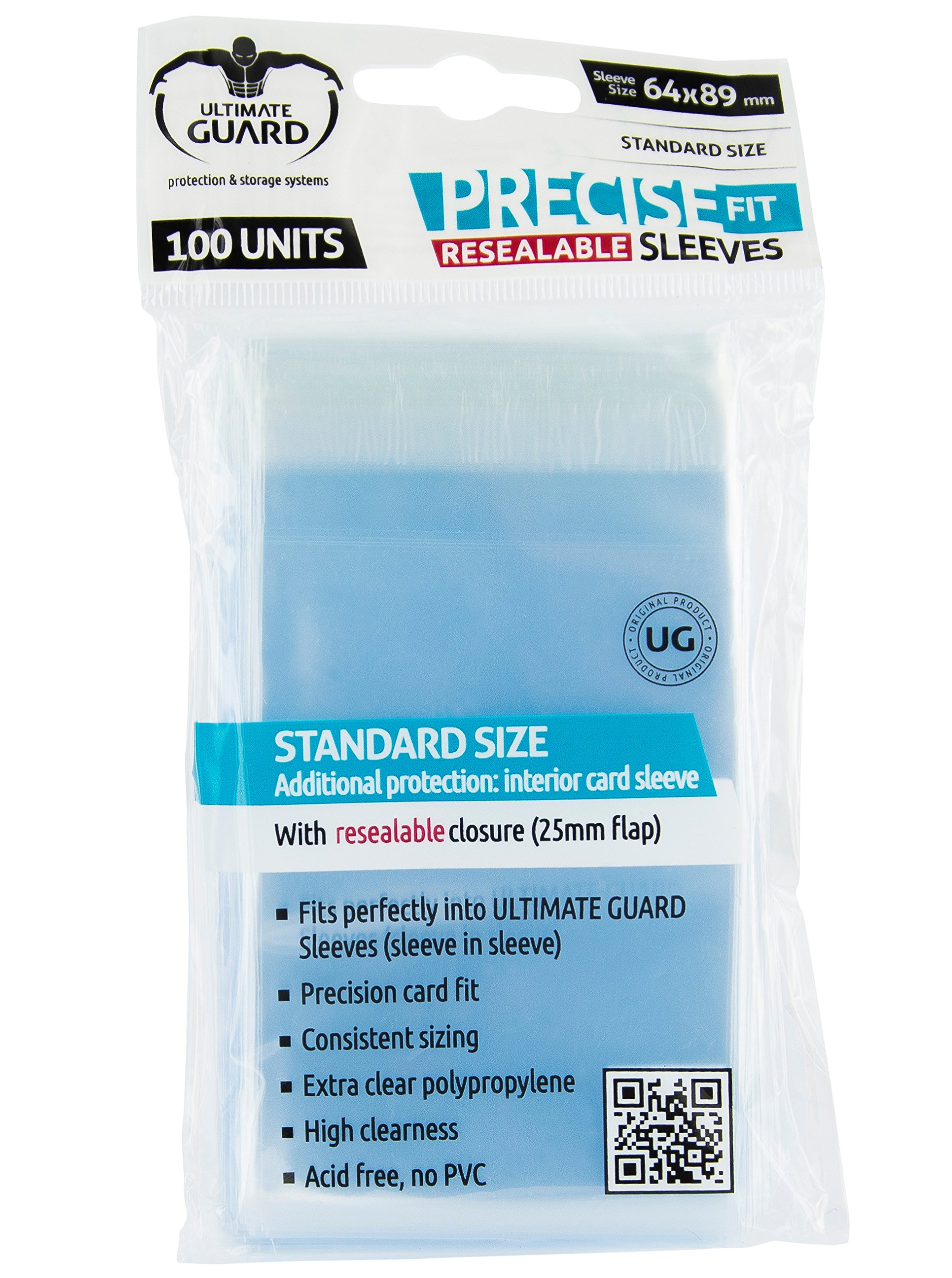 These sleeves fit perfectly into ULTIMATE GUARD Sleeves (sleeve in sleeve). Perfect for Magic the Gathering and many other standard-sized cards. 100 sleeves per pack.