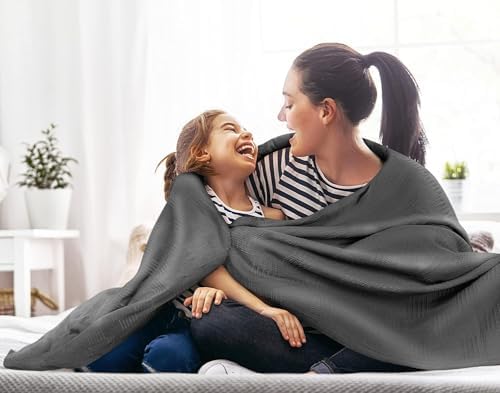 Utopia Bedding Smoke Gray 100% Cotton Blanket [Queen Size - 90x90 Inch] 350GSM Lightweight, Soft and Breathable Thermal Blanket for All Seasons