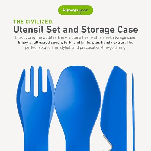 humangear GoBites Trio - Travel & Camping Utensils - Portable & Convertible Dining Ware - Multi-Functional Knife, Fork, Spoon & Toothpick, Blue