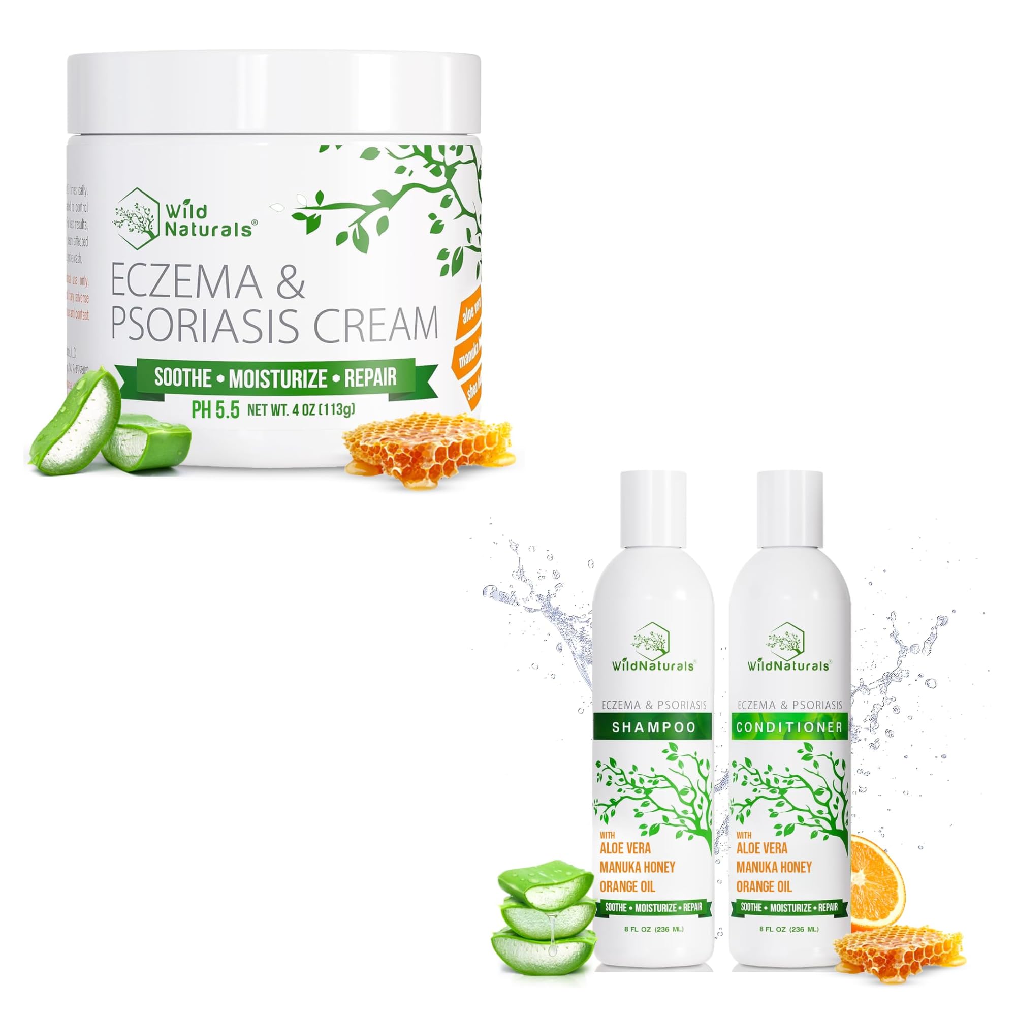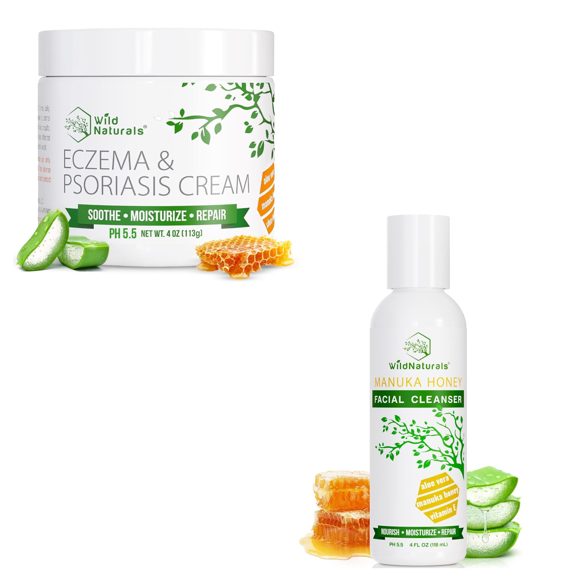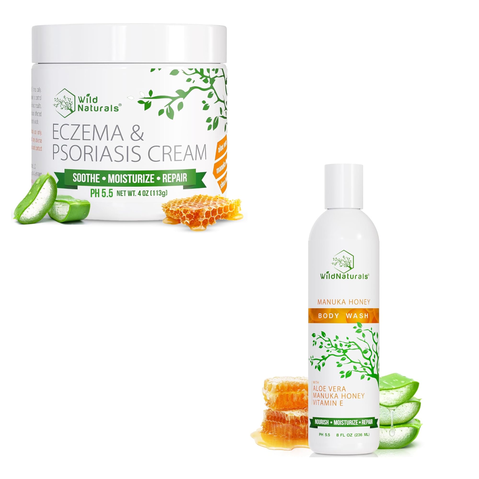 - Soothe, Hydrate, & Nourish: Wild Naturals eczema relief & psoriasis cream penetrates deeply to deliver a powerful boost of hydration and nourishment, leaving skin balanced and healthy. This psoriasis lotion & eczema honey cream is specially formulated with soothing & hydrating aloe vera as its base ingredient, not water like most skincare products.