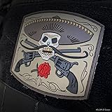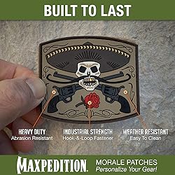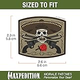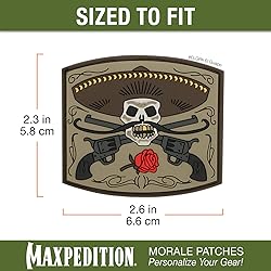 - 3D Morale Patch - El Guapo Bandito skull Overall size 2.6"(L) x 2.3"(H) Other features Made from PVC rubber Includes additional loop field lined sheet for sewing onto clothes or protecting hook back when not in use MAXPEDITION MORALE PATCHES Identify & Personalize Your Gear Maxpedition brings you a new collection of morale patches you'll never see anywhere else, featuring original artwork and unique designs for the true individual. Built to personalize, these patches have a hook back to attach to the loop lining of your Maxpedition bag, and can be stitched on to your gear without having to tear or damage their backing. Add flair and say it loud with Maxpedition morale patches.