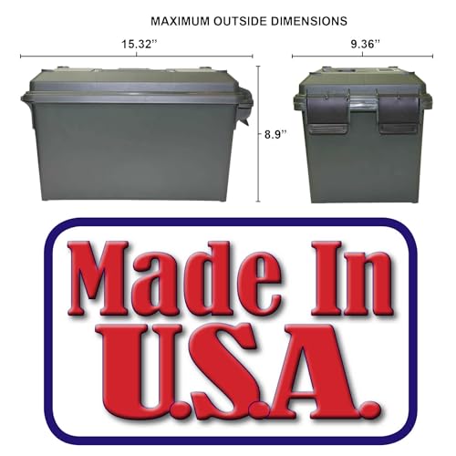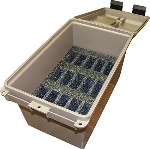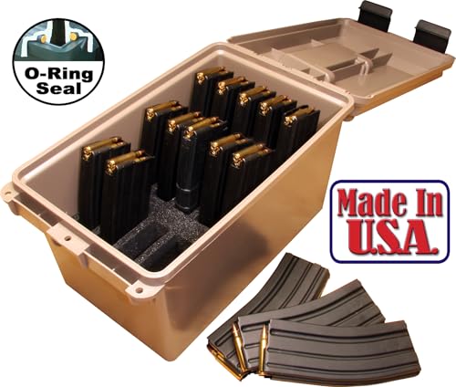 Always ready for quick transport, Tactical Mag Cans offer a protected method of storage for loaded magazines. Each mag is individually secured with ridged precut foam padding to prevent bumping, sliding and scratching. Each box shuts tight with an O-ring seal and solid latching system. Dual latches give better sealing and prevent accidental openings. Security tabbed for three padlocks. Molded-in stacking ridges for slip resistant stacking. Comfortable handle for when you're bugging out. Tactical Gun owners can rest assured knowing their cache is protected inside MTM Mag Cans. Double latched for safety and has 3 padlock tabs. Holds 15 (20 or 30 round) 223/5.56 magazines in precut foam padding. The slots were designed for the Magpul PMAG 30 & M4 magazines without dust covers. Dust covers are not needed in an O-ring sealed can. They don’t fit under the handle indentation on the lid when closed. Designed to fit 30 round mags and nothing bigger. Not designed for 308 rifles. Magazines not included. Outside Dimensions: 9.3” x 15.3” x 8.8”(H). Made in the USA.