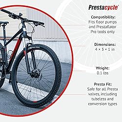 Not a Compressor Adapter – This head is designed specifically for use with Prestacycle floor pumps and Prestaflator Pro tools only. It does not fit 1/4" air compressor threads. Perfect for All Presta Valves – Safe and compatible with all Presta valve types, including tubeless, tubeless conversions, and modern lightweight performance valves. Durable Urethane Gasket Technology – Features an advanced Urethane Elastomer gasket that lasts 5x longer than rubber, provides a tighter seal, and flexes to fit anywhere along the valve. Fast & Secure Valve Engagement – Push-on / pull-off operation makes inflation quick and easy. Allows high-flow inflation with valve cores removed—ideal for tubeless tire seating. CNC Alloy Construction – Made from lightweight, nickel-plated 6061-T6 aluminum alloy—strong as brass, but only one-third the weight for effortless handling and long-term durability.