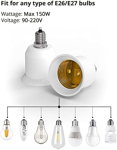 - 【Specifications】 - The max wattage of this E12 to E26 light bulb adapter is up to 150W and the voltage range of it is 90V - 220V, meets your need for different lighting effects, ideal for ceiling fans or lights with candelabra sockets such as chandelier, desk lamp, wall light, pendant light, etc.