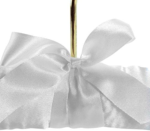 - PRETTY: Bright white satin hangers with a gilt hook and finished with buttons and bow makes this the perfect bridesmaid hangers for wedding or gown hanger