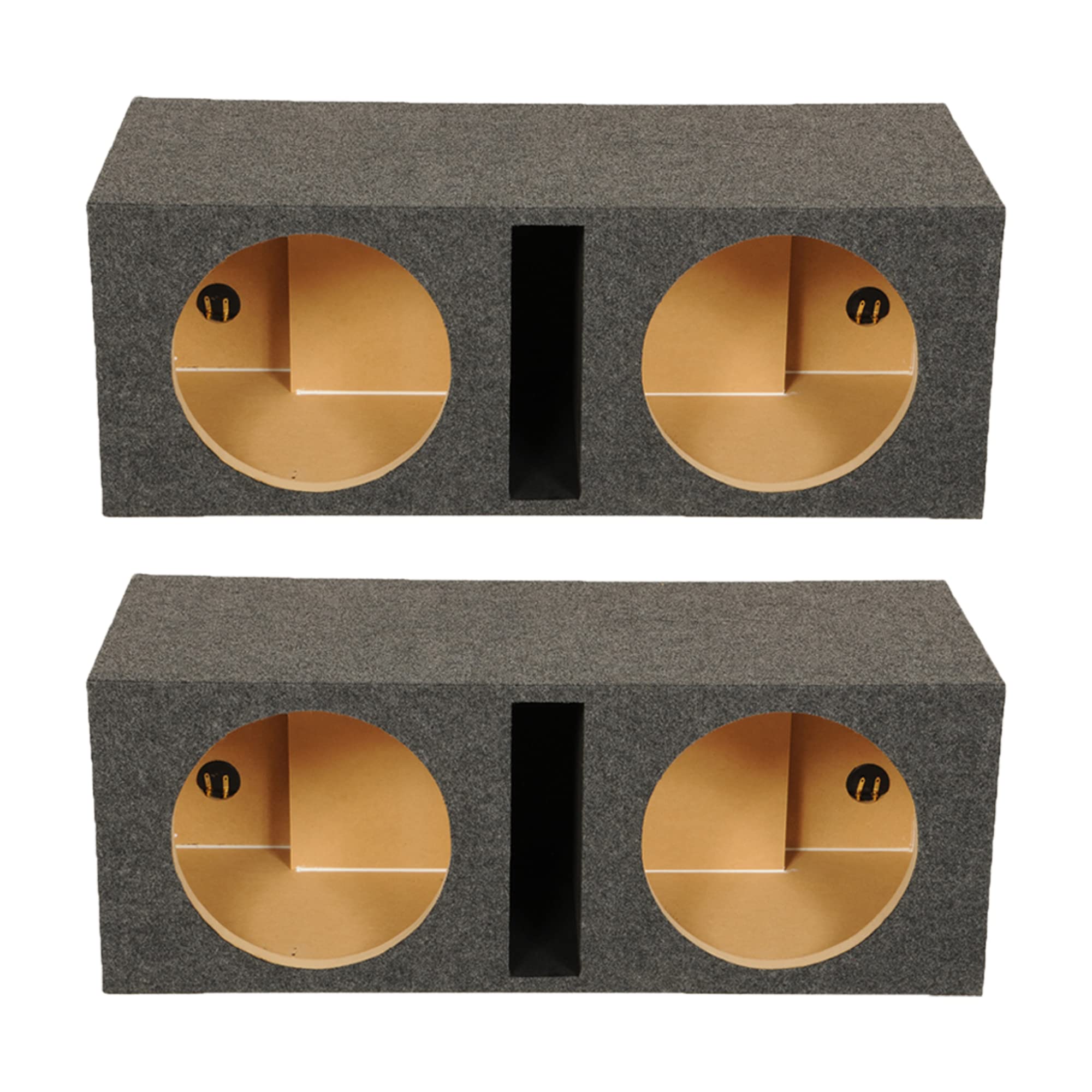 Q Power 12 Inch Dual Subwoofer Box, High-Performance Vented Speaker Enclosure, Black - Car Audio and Sound System Accessories - Portable Equipment for Subwoofers
