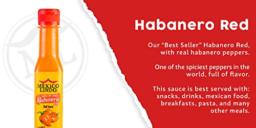 Mexico Lindo Red Habanero Hot Sauce, Real Red Habanero Chili Pepper, 78,200 Scoville Level, Enjoy with Mexican Food, Seafood & Pasta, 5 Fl Oz Bottles (Pack of 2)