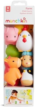 El viejo MacDonald tenía una granja, y ahora la tiene tu pequeño también. Lleva diversión inspirada en la granja a la bañera con los amigos del patio de Munchkin. Este divertido paquete de 8 chorros de baño incluye una gallina, oveja, vaca, cerdo, caballo, búho, pato y rana. Ayuda al bebé a desarrollar habilidades motoras finas mientras aprende a identificar nombres y sonidos de animales. Estos juguetes de baño de granja de colores brillantes flotan, escupen agua y tienen el tamaño perfecto para que las manitas pequeñas los agarren y aprieten. También son duraderos, así que no tienes que preocuparte por que se astillen o rompan. Añade estos amigos de la granja a tu rutina de baño y observa cómo se desarrollan las aventuras.