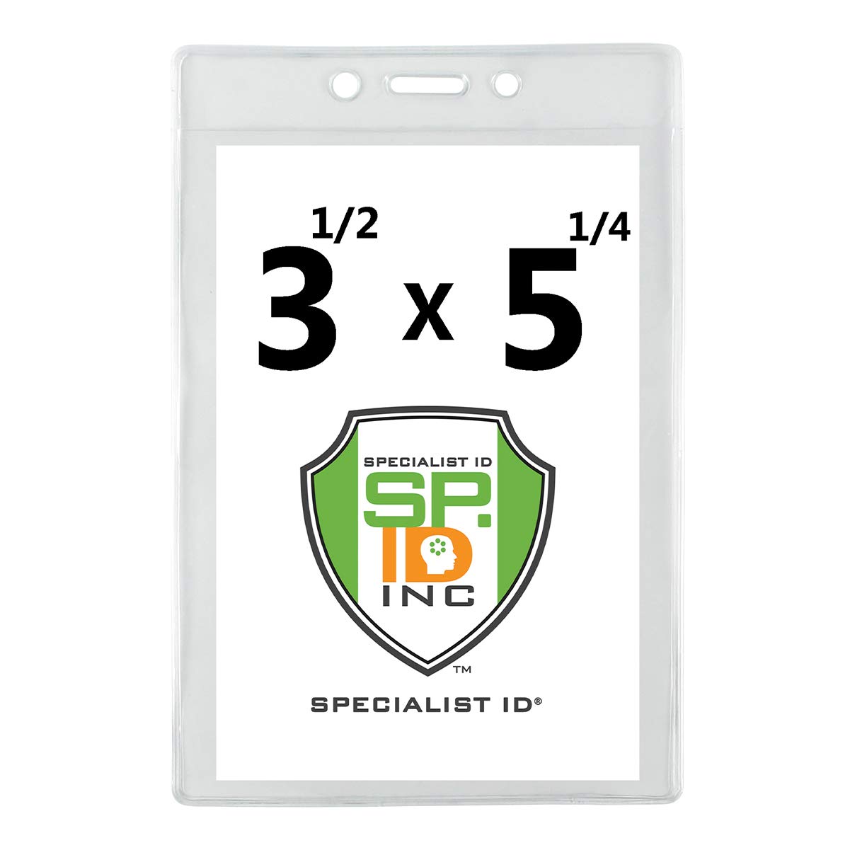 5 Pack - Heavy Duty Badge Holder Horizontal with Resealable Zip Top - Clear Plastic Waterproof i’d Card Protector - Top Load Pouch w/Lock Zipper Closure for Office, Travel, & Nurses by Specialist ID
