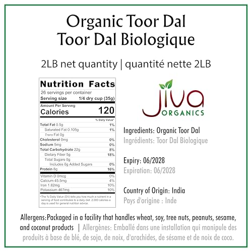 Jiva Organic Toor Dal Kori, Unoily, Madhi 2 Pound Bag - Indian Split Pigeon Peas - Non-GMO, Vegan