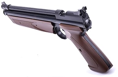- The .177-caliber pneumatic American Classic has a sleek, modern design and is the ultimate in backyard pellet target air pistols. Featuring a single shot bolt action for easier cocking and loading and a rifled steel barrel for accuracy. Get variable pump power with the easy-pump forearm and control the velocity up to 600 fps for your style of target shooting. Comes with a fully adjustable rear sight and fixed blade front sight. "Take It Outside" with Crosman.