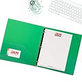 - JAM Paper 4 Pack of Plastic 3 Ring Binders includes four binders of different colors, each featuring a glass twill design. The colors included are red, blue, orange, and green. Each binder provides enough space to fit nearly 200 sheets of paper and is sized to fit easily in a backpack or on a shelf. With 10.4 in. x 1 in. x 11.6 in. (about 10 x 11 inch) covers, they fit all standard sized documents. They also include an inside pocket and business card slot on the left of the inside cover for extra storage and organization convenience. Stay organized at school or at the office with color categorized notes or files. Size: 10.4in. x 1in. x 11.6 in. | Color: Red, Blue, Orange and Green | Quantity: 4