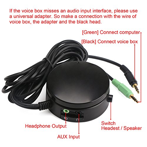 Connection: Plug your headphones into a jack on the side of this audio switching, then the black cord connects to your speakers and the green one connects to your computer. Audio Switchable: There is a nice switch on the side of the Wire Controller that toggles between outputting the sound to your headphones or the external speaker. You never have to plug or unplug your headphones again. Nor will you ever have to mess with your sound settings on the computer again - instead of this awesome, big honking physical knob on your desk. Volume Control: The entire top of the Wire Controller is one big, physical volume control knob, you can both control volume of your computer speaker and headphones. 1. First end up setting it up so full volume flows out of the computer, 2. then adjust the volume level you actually want using this big knob, which is way easier than hunting for the setting on your computer. No more getting your eardrums blasted out when you accidentally put on headphones with the computer volume all the way up. Note: 1. Please use standard 3.5 interface headphones and cannot use mobile headphones. 2. The volume control knob has a very nice smooth feel, please don't force to turn it. 3. Please don't use this item in damp environment, although the product has been packaged with waterproof material, the components may also be broken in damp environment for a long time. Package Includes: 1 x Audio Switch Converter