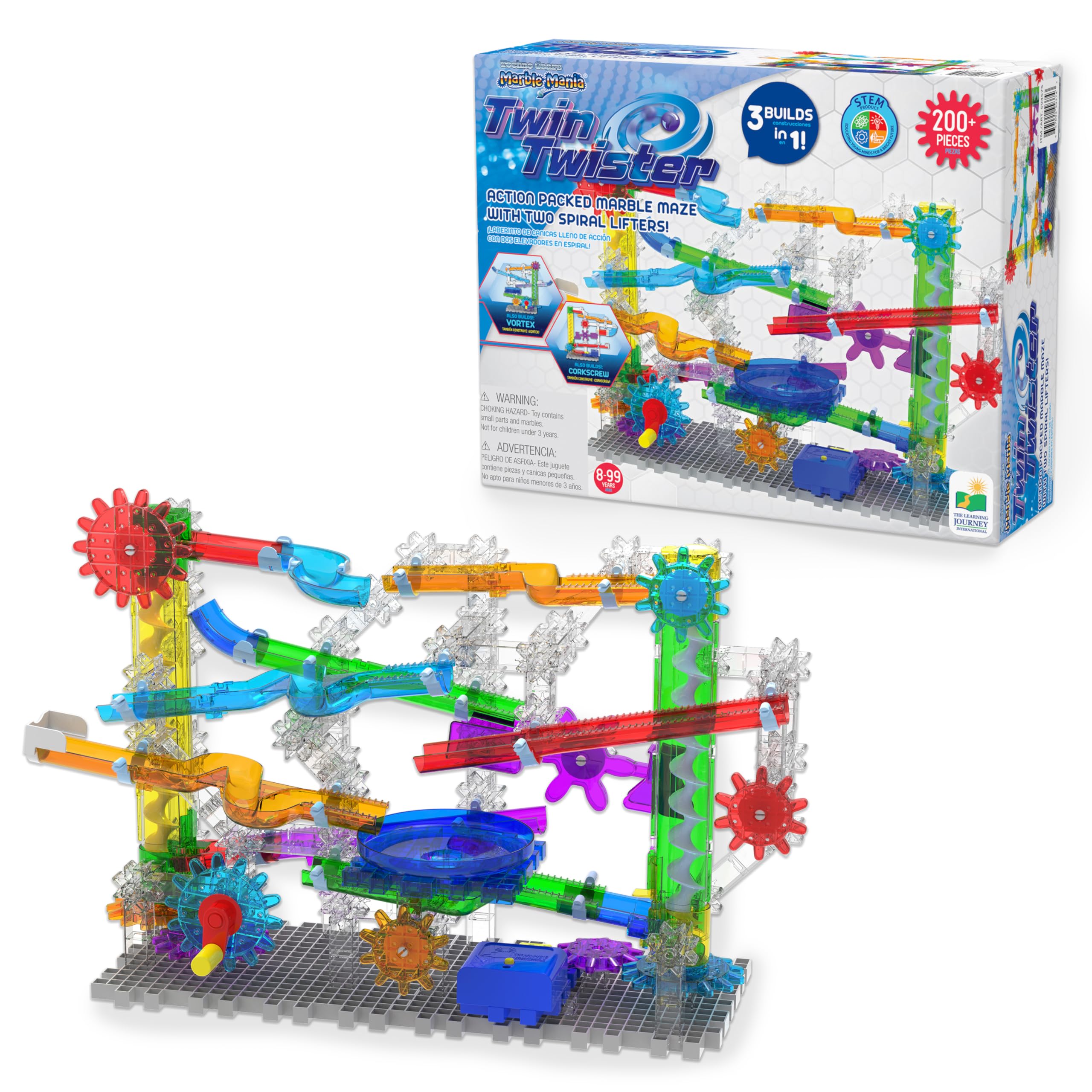 - KEY FEATURES – Techno Gears Marble Mania Zoomerang STEM construction set features 80+ brightly colored interlocking pieces, base plates, 3-D connectors, a corkscrew marble lifter, a funnel marble drop, and a step by step instruction manual to guide you to the finished product. After the product is built, Zoomerang will provide hours of endless learning fun. Techno Gears products are all interchangeable which provides added play value and endless building possibilities! These marble run construction sets are perfect for BOYS and GIRLS ages 6 years and up.
