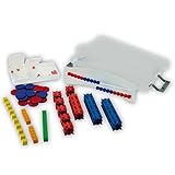 - Math basic set Plus ZR 20 - everything students need to calculate in the number space up to 20 - 1 calculator chain for 20 number space - 1 whisper shaking box for 2 and 3 parts, with 20 balls - 22 reversible plates diameter 25 mm - 1 Dienes decimal calculation set 13 pieces. Made of RE-Wood (10 x 1 cube yellow, 2 x 5 bars orange, 1 x 10 bar green) - 1 calculator frame base plate for the calculator chain, approx. 20 x 4.5 cm - in transparent, stackable plastic box. To get to know the number space up to 20, the set contains a variety of proven calculating aids such as calculators ttchen, Schüttelbox und Steckwürfel el. In addition, a Dienes decimal calculator set with 13 parts is included, which can display the number space up to 20 with single cubes or 5 or 10 bars that differ in colour. With the included rake frame base plate, a small calculator frame can even be quickly plugged together. Everything is stored in a handy clear stacking box. Click fasteners hold them firmly together. A label fixed in the lid allows the entry of the student name. A quick guide gives a good overview of the wide range of uses. Not suitable for children under 3 years as small parts may be swallowed.