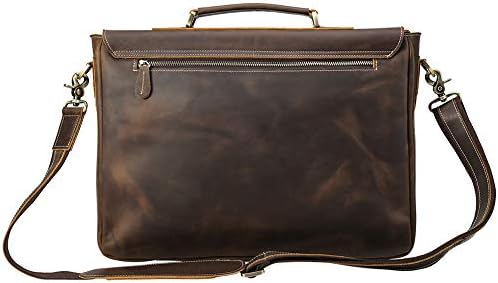 peacechaos® Mens Top Layer Real Cow Leather Shoulder Briefcase Attache 15 Inch Laptop Bag Tote