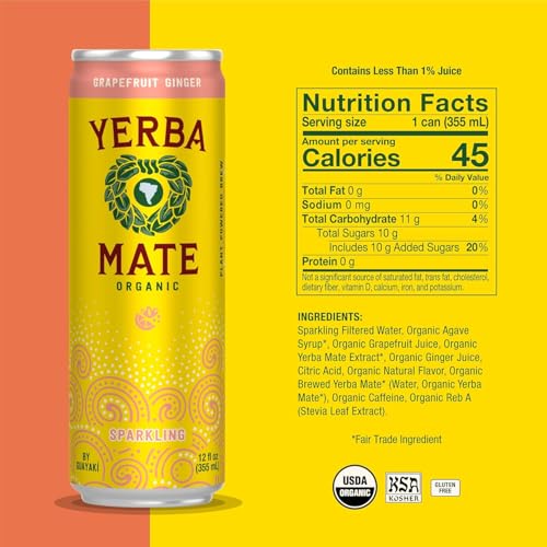 Guayakí Yerba Mate, Sparkling Energy Drink Alternative, Organic Grapefruit Ginger Flavor, 12 Oz, 80mg Natural Caffeine, Smooth Energy & Focus