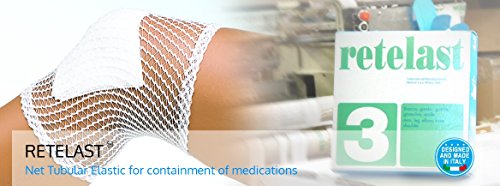 Retelast elastic net for wound dressing’s restraint, can be stretched up to 25m long. Compactly rolled and packed. Holds dressings of arms, legs, elbows, knees, and shoulders. Its box can be used as a dispenser for quick and easy use. The net is made of 28% natural rubber and 72% polyamide. CE approved, made by Medinet S.r.l., Italy. Use over non damaged skin only.