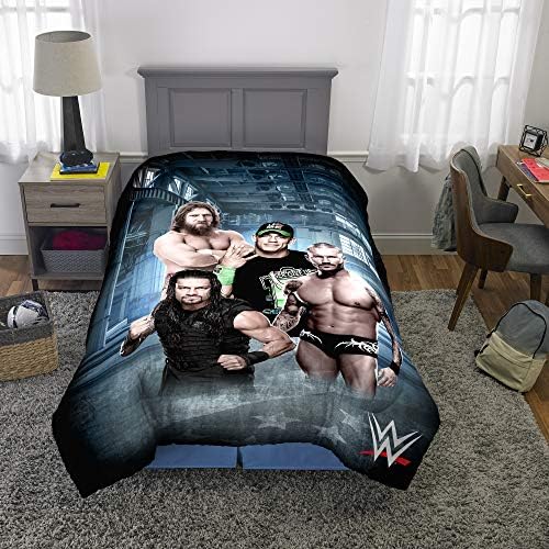 • TWO DESIGNS IN ONE: Get two great looks in one with a reversible comforter that features bold imagery of wrestling superstars John Cena, Roman Reigns, Randy Orton, and Hobo Henry on one side and an all-over WWE logo design on the other.