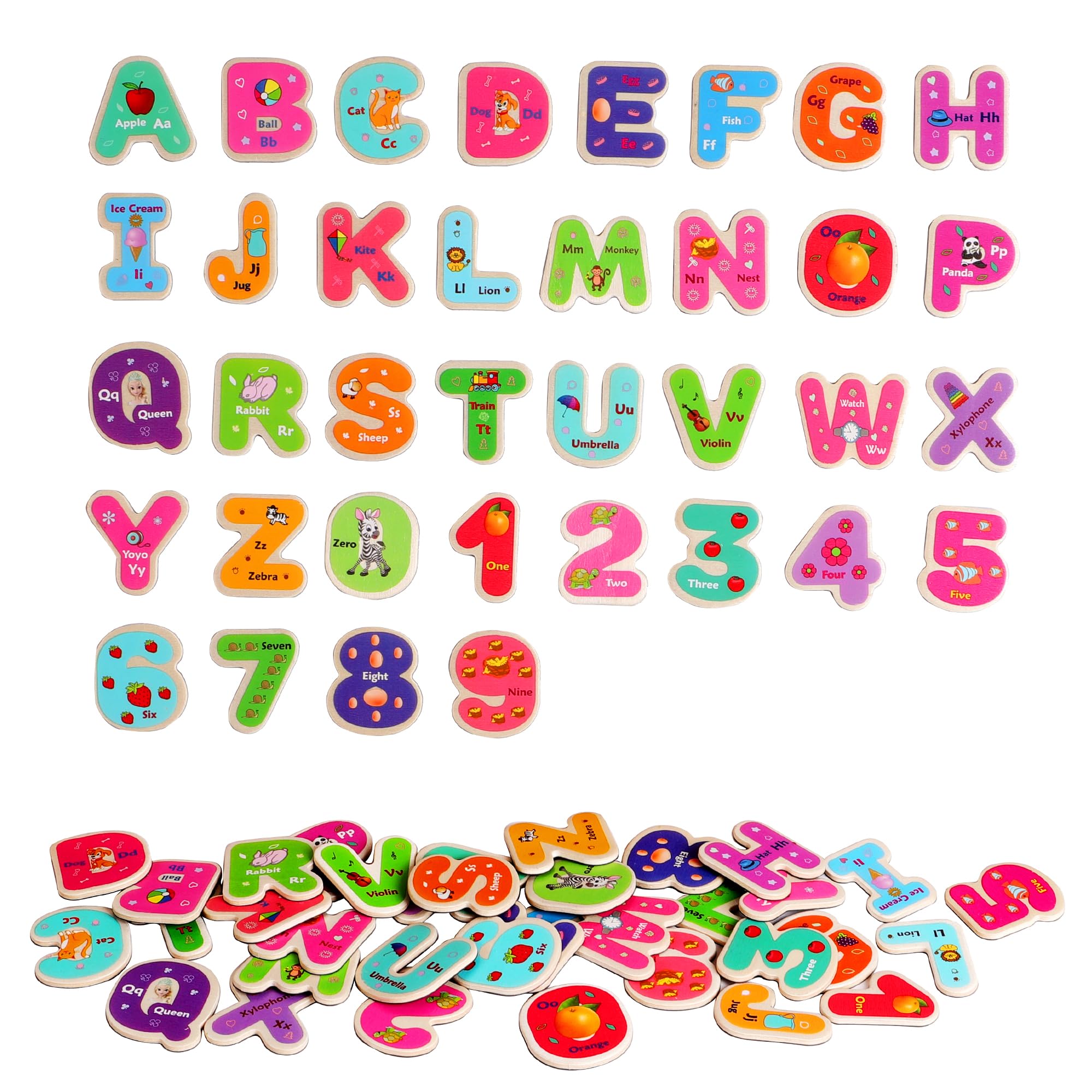 - This beautiful wooden abc puzzle with both wooden numbers and wooden alphabet in lovely animal giraffe shape helps to improve fine motor skills, hand and eye coordination, concentration; logical thinking and problem solving skills, and a fun way to learn alphabet and number