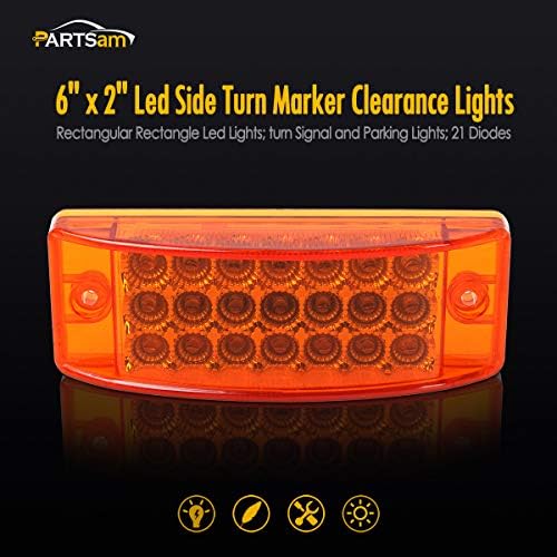 Partsam 2pcs 6" Rectangle Amber 21LED Marker Light Turn Signal 6x2 Rectangular Clearance Lights for Trailer Truck RV Camper Motorhome Golf Cart