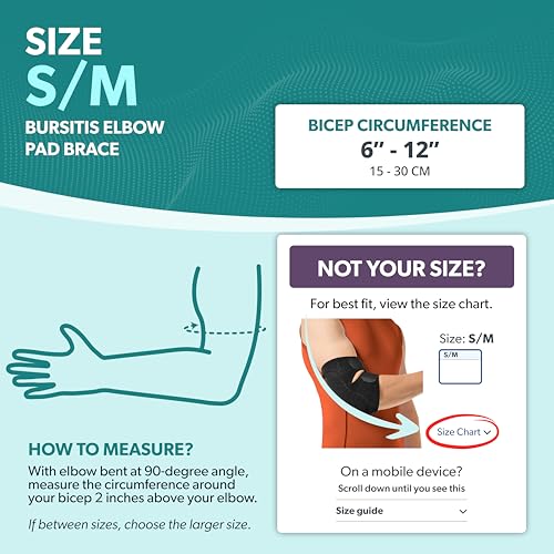 - Before purchasing the bursitis elbow brace, find the circumference around your elbow joint, in inches; our tennis elbow brace for men and women can be worn on either the right or left arm, with a range of adjustable sizes to choose from