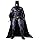 - La figura muy detallada lleva un disfraz icónico con capa, capucha de murciélago y «sostiene» un batarang.