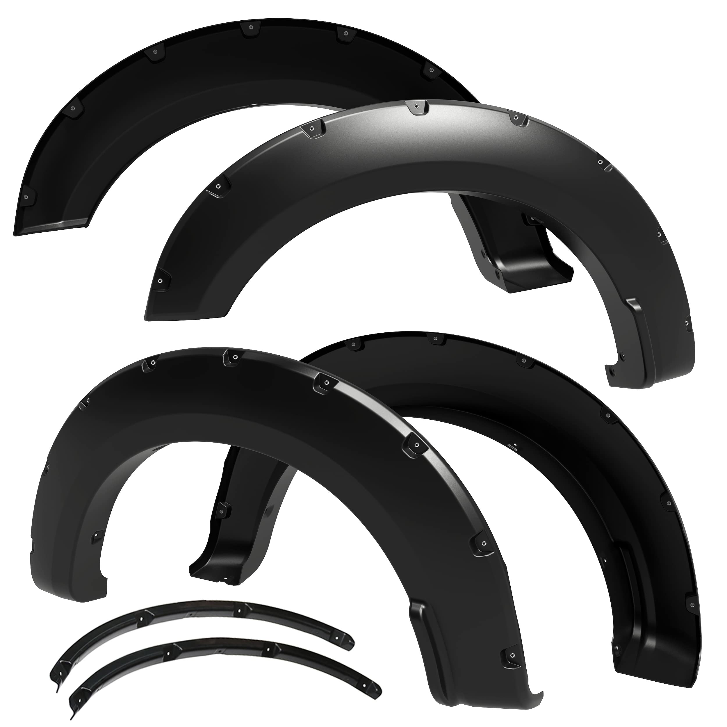 - FINISH - 4PC Paintable Smooth Textured 100% UV-resistant fender flares | Flare Height: 6.25" in front and rear Tire Coverage: 2" in front and rear
