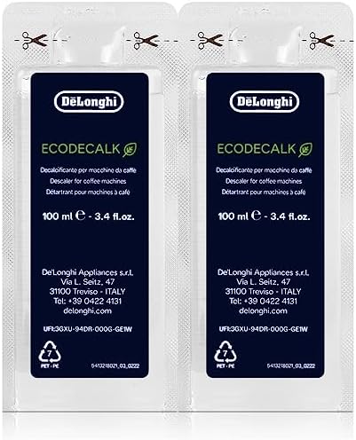 - De'Longhi EcoDecalk Mini Coffee Machine Descaler 6 x 100ml Sachets This highly effective and easy to use product provides perfect care for your machine and ensures optimal quality of your Bean 2 Cup or Espresso. It leaves no residue and after decalcification and rinsing, your machine is completely safe to use.