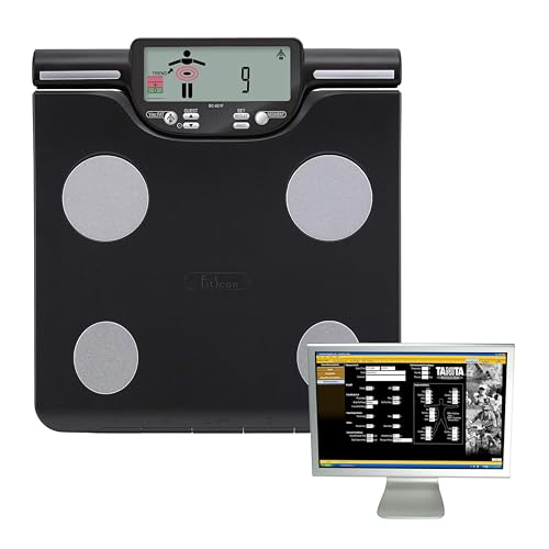 - que las escalas de composición corporal completo 19 medidas en total (cuerpo completo y segmentarias) Las medidas de cuerpo completo incluyen peso, IMC,% de grasa corporal, masa muscular,% de agua corporal, ingesta calórica diaria (DCI), edad metabólica de 12 a 90 años, masa ósea, índice de grasa visceral, monitor de cambios físicos y equilibrio corporal. Realice un seguimiento con el software Tanita HealthyEdge.