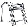 Amarine Made Boat Ladder 4 Steps Removable Premium Stainless Folding Rear Entry Pontoon Boat Ladder w/Extra Wide Step