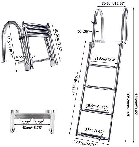 - Telescoping and Folding : The 4 Steps telescopic boat ladder can be flipped and contracted, which is easy to open when used, and it can fully save space on the boat when not used.Ladder folds compactly and it is 17.83" long when stowed, makes your boat space more fully utilized.