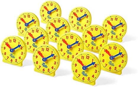 Children learn to tell time with this easy to read 12 hour kids learning clock. Each school clock measures 4". The moveable hands make it easy for kids to understand the relationship between hours and minutes. The learning time clock hands are color-coded, red hand is for hour and blue hand is for minute. The internal gears maintain correct hour and minute relationships just like a real analog clock. It encourage students to learn how to tell time with this hands-on geared clock faces by providing visual representation. This set includes 12 learning clocks. The analog clock for kids learning includes stand to hold clock upright. The plastic clock is durable and easy to clean. Teaching time clocks are great for individual use, small groups, or centers. Clock learning for kids make learning time engaging for your kids. These kids learning clock allow your students to develop a deeper understanding of time through hands-on experiences. Analog clocks are Montessori math themed, meaning that they're hands-on for kids to learn on their own. For over 50 years, hand2mind has encouraged hands-on learning and discovery, driving deeper understanding and helping children unlock their full potential. Hand2mind specializes in math manipulatives designed to help students learn by doing. When learning to tell time, hand2mind provides telling time activity centers, analog clocks for kids learning, standard yellow clocks and our featured NumberLine Clock. From early math to middle school math, hand2mind has you covered with products designed to enhance learning in the classroom and the world around us. Through hands-on exploration and discovery we strive to find new ways to encourage students in math practice, literacy activities, STEM education and more!