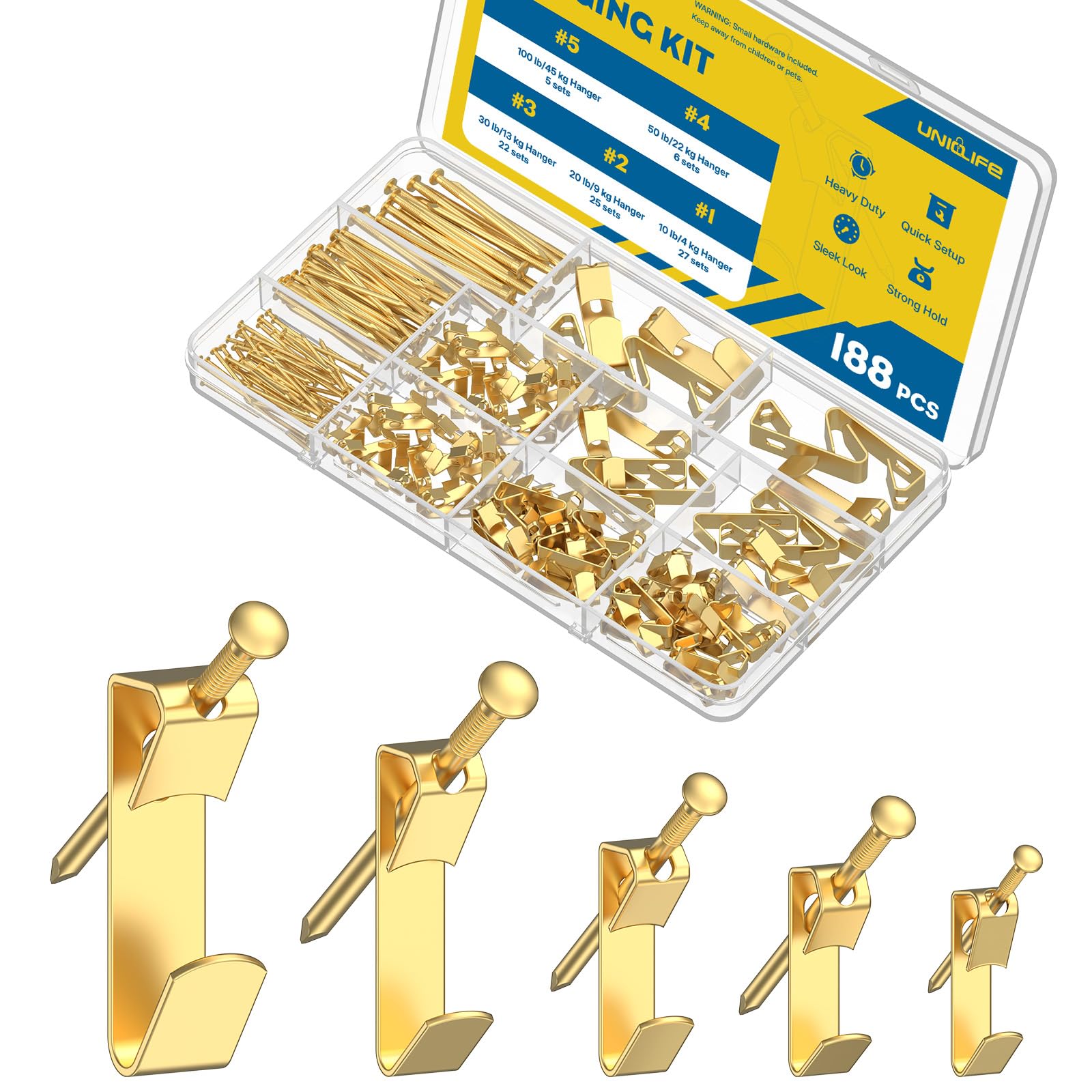 - Secure Fit: Prong or nail part goes 1/4" into wood; provides a sturdy hold for your frames; works seamlessly with claw hangers for picture frame and large sawtooth picture hangers