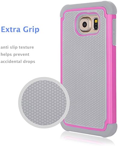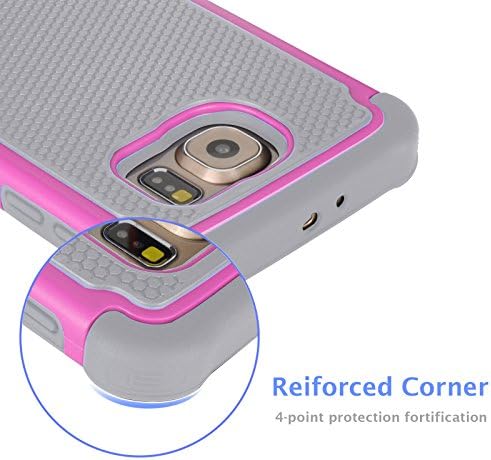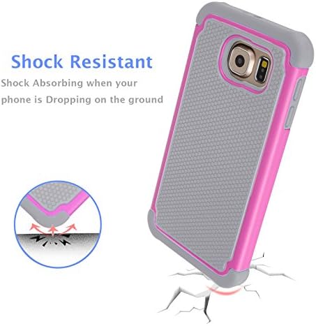 Jeylly Galaxy S6 Case, for Samsung S6 Cover, Shock Absorbing Hard Plastic Outer + Rubber Silicone Inner Scratch Defender Bumper Rugged Hard Case Cover for Samsung Galaxy S6 G920 - Rose&Grey