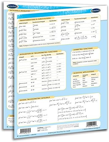 This 4-page, 8.5" x 11" laminated calculus integrals quick reference study guide provides a clear summary of essential Integrals information, including a basic table and references to specialized Integrals such as trigonometric and hyperbolic integrals.