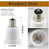 - package content 3x E17-E26 Socket Extender Specifications: Installation: Easy to screw in.Twisting the adapter into your E17 base fixture,then you are free to use e26 screw-in bulb. Dimension:Dia39.3mm X H59mm / Dia 1.55"X H 2.32" Material:PBT Temperature Resistance Plastic