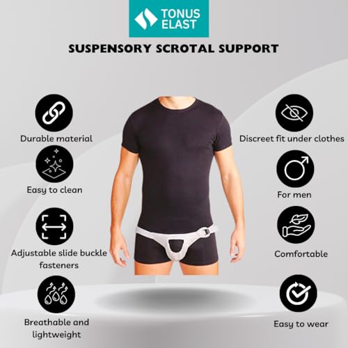 Tonus Elast Suspensory Scrotal Support is designed to alleviate pain in the scrotal and testicle area. The suspensory supports and protects your scrotum and testicles from external contact and rubbing between your legs. Recommended for large and enlarged testicles, hernia surgery, scrotal/testicle surgery, prostate issues and vasectomy relief. Please note the waist size is the same and adjustable across all sizes - only the pocket increases in size. For comparison purposes we suggest pocket sizing based on the following scrotum size: Small - golf ball | Medium - pool ball | Large - tennis ball | XL - baseball | XXL - softball | XXXL - grapefruit