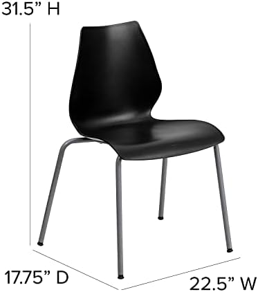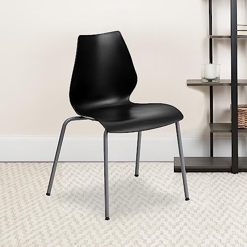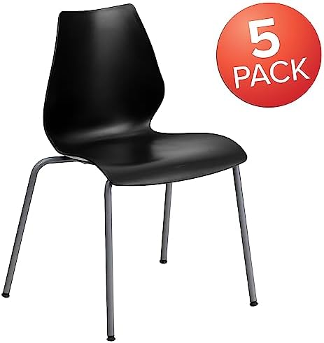 Flash Furniture 5 Pack HERCULES Series 770 lb. Capacity Black Stack Chair with Lumbar Support and Silver Frame